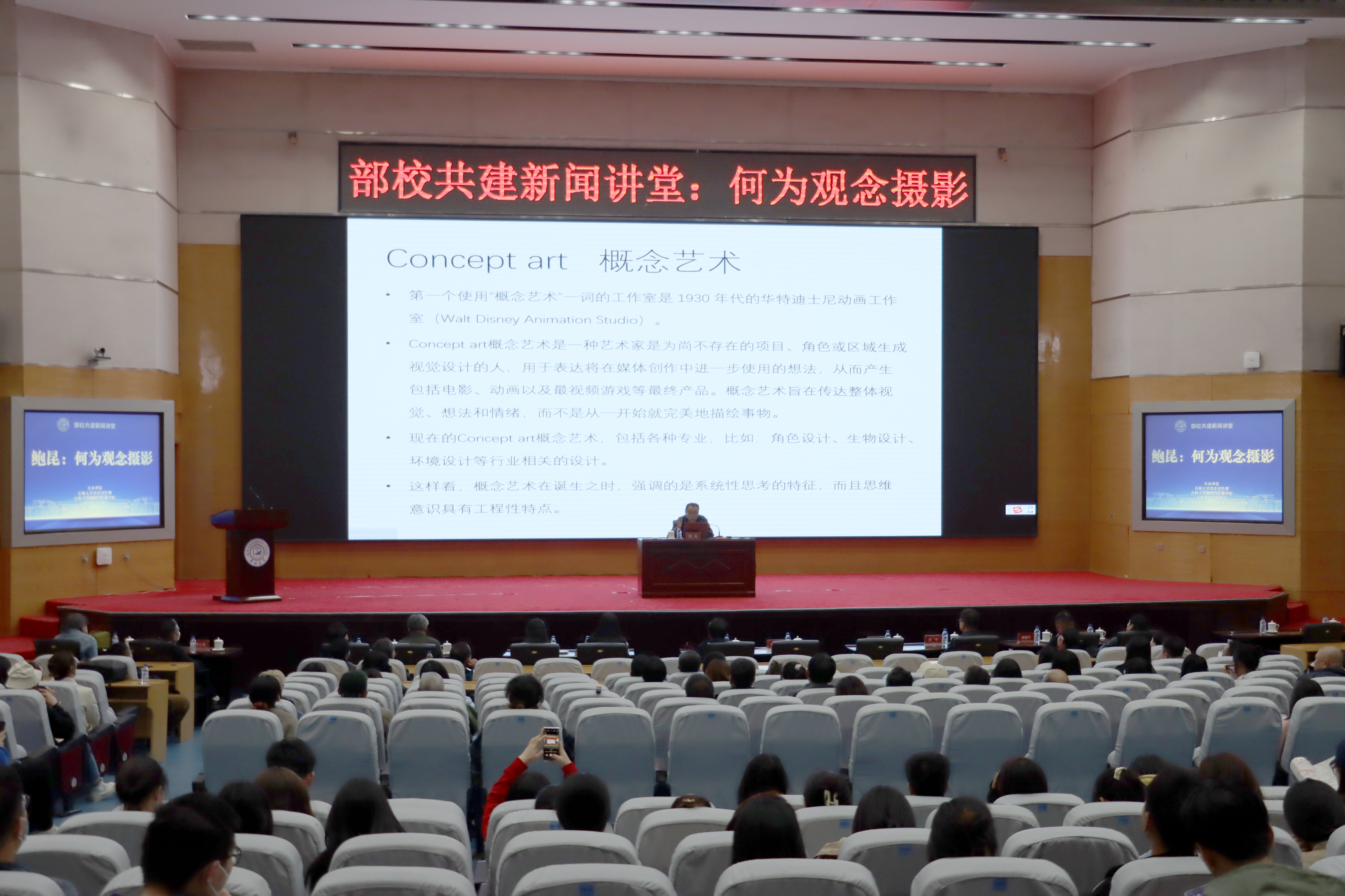 2023年3月29日18点10分,星空注册暨新闻与传播学院“部校共建新闻讲堂”系列讲座2023年第一场在东荣大厦一楼报告厅开讲。著名视觉文化批评人、策展人鲍昆做了以“何为观念摄影”为主题的学术报告。