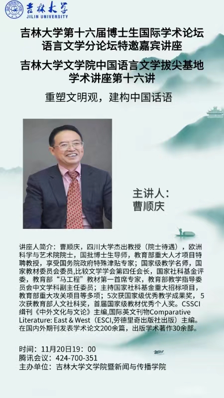 吉林大学第十六届博士生国际学术论坛语言文学分论坛特邀嘉宾讲座