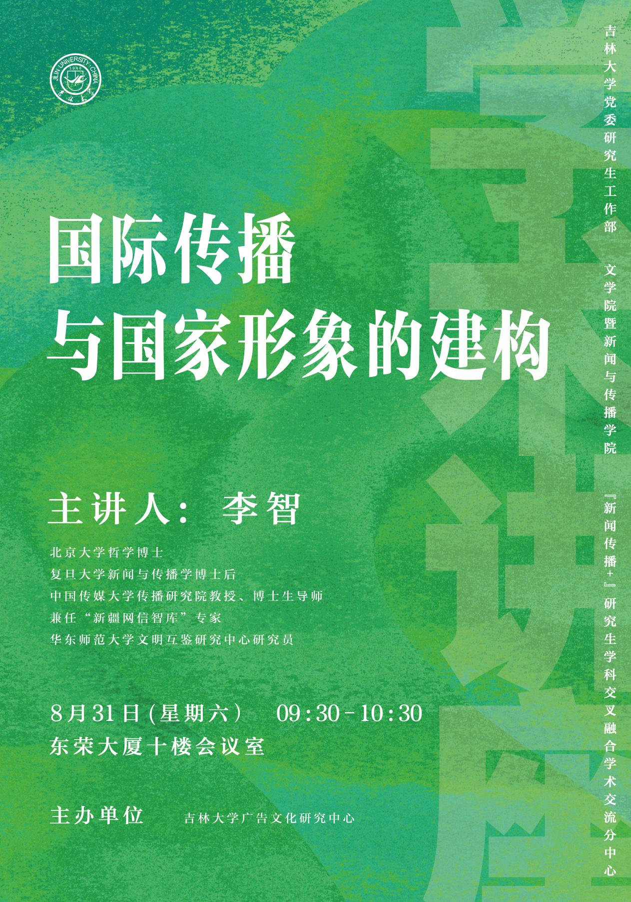 本次活动由吉林大学党委研究生工作部、星空注册暨新闻与传播学院、“新闻传播+”研究生学科交叉融合学术交流分中心联合吉林大学广告文化研究中心共同主办,拟邀请中国传媒大学传播研究院李智教授,围绕“国际传播与国家形象的建构”展开国际传播理论与实务的思考与探讨。