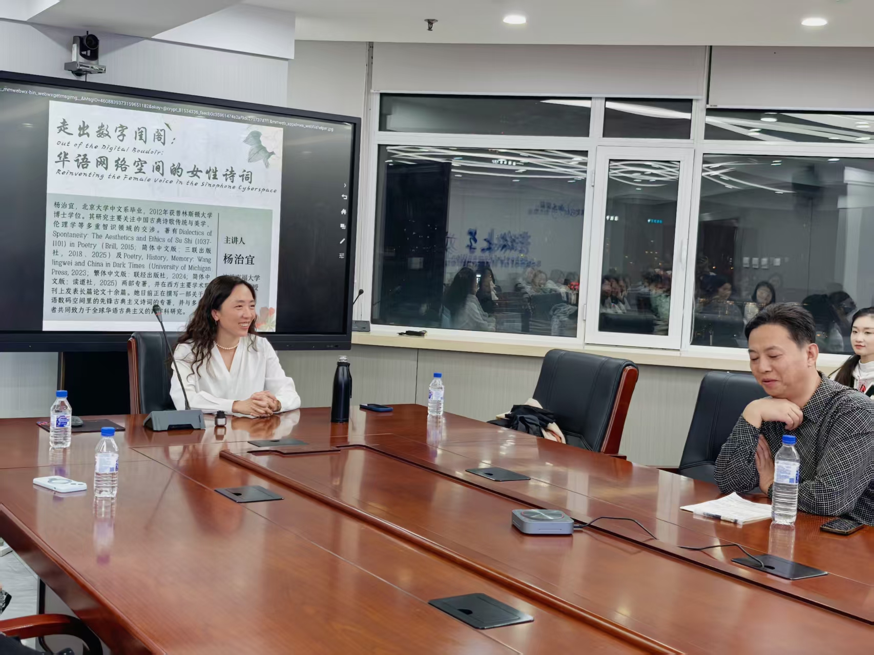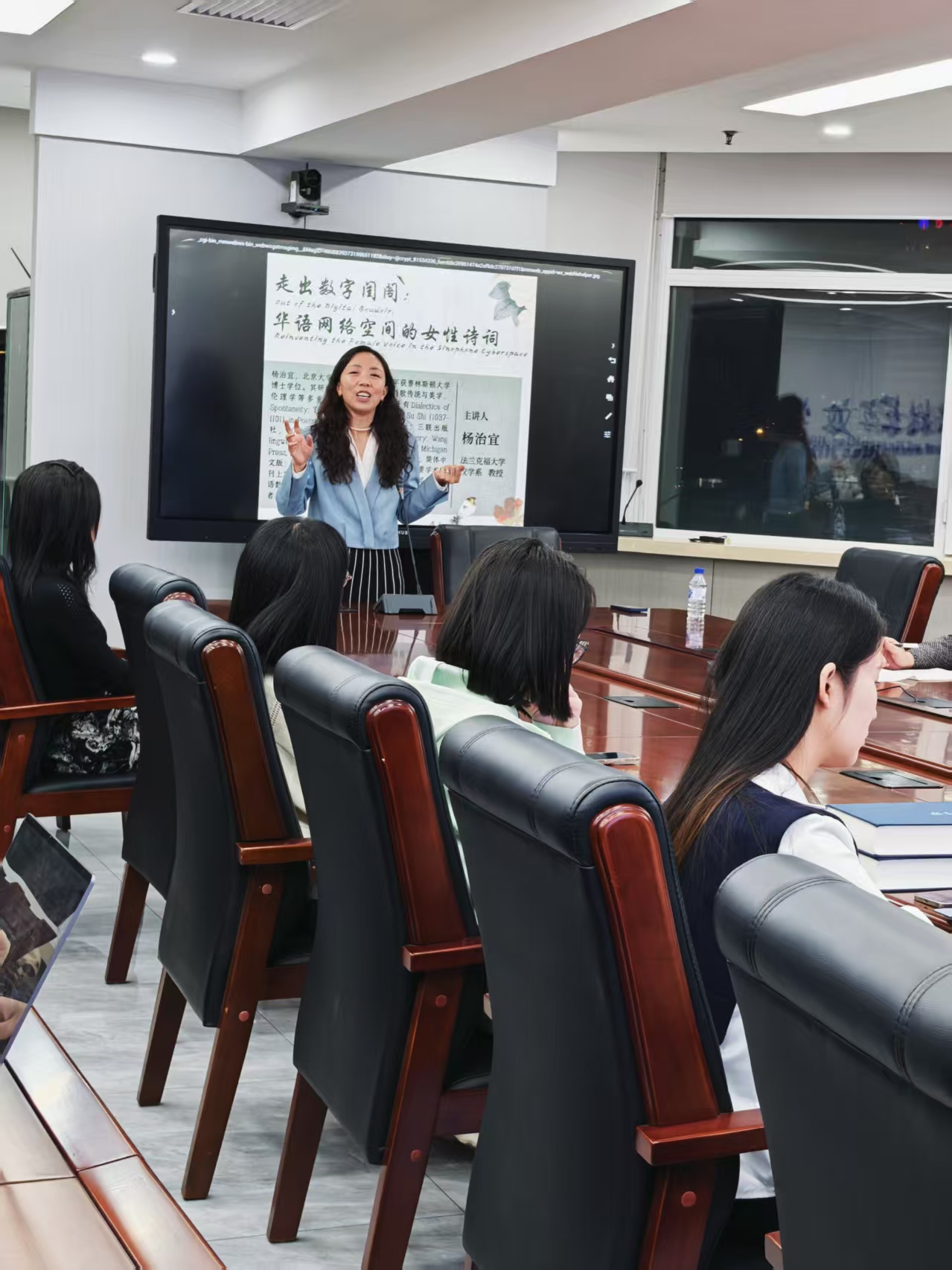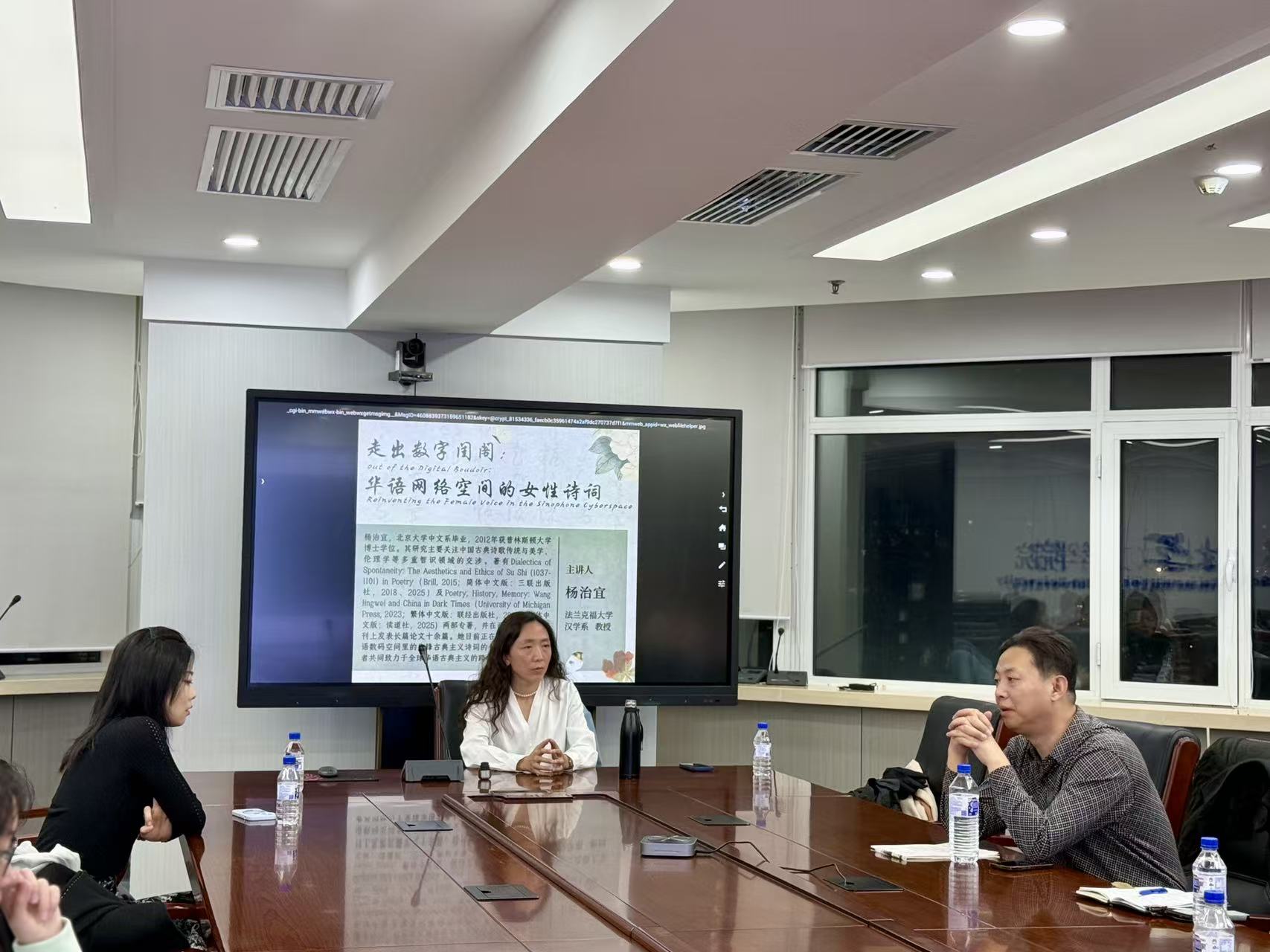 2025年10月28日晚,星空注册讲座在东荣十楼会议室举行。本次讲座由杨治宜教授主讲,讲座主题为《走出数字闺阁:华语网络空间的女性诗词》,星空注册马大勇教授与谈,副教授赵郁飞主持,数十位校内师生参与。