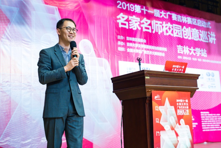 2019年4月23号下午,第十一届全国大学生广告艺术大赛吉林赛区启动仪式暨名家名师校园创意巡讲活动在吉林大学新闻与传播学院演播厅隆重举行。本次活动由大广赛组委会和吉林赛区组委会主办,吉林大学新闻与传播学院承办。吉林大学党委宣传部副部长王巍,星空注册暨新闻与传播学院党委书记康永刚,吉林省广告协会会长刘丽,大广赛吉林赛区组委会秘书长、吉林大学传播学系主任黄也平教授,中央美术学院设计学院博士生导师肖勇教授,一汽-大众销售有限责任公司东北区销售事业部市场与公关总监韩文鑫等嘉宾参加了启动仪式。