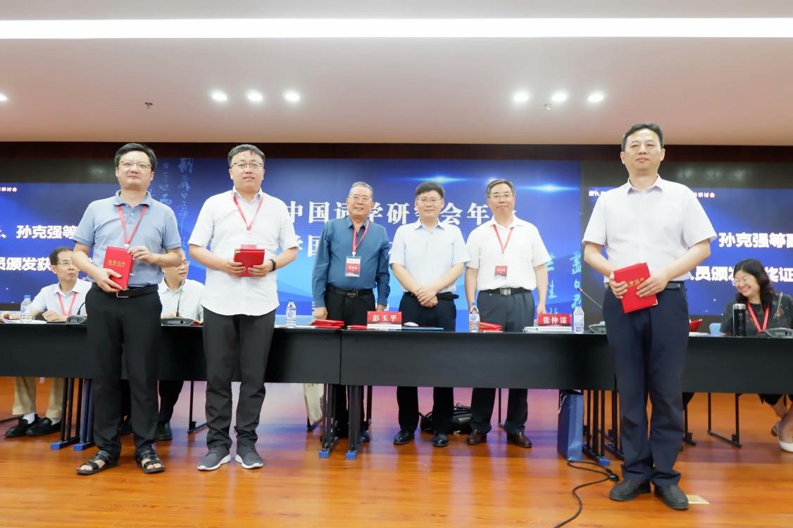 7月18日下午的闭幕式由内蒙古民族大学文学与新闻传播学院院长郝青云教授主持。首先,三个小组的汇报人分别代表本组汇报了两天的研讨成果;彭玉平教授对本次词学会进行了全面而精彩的学术总结,彭教授指出,词学研究应注意理论与文献的结合、关注研究对象的特殊性、秉持客观与理性的精神、遵循逻辑与体系的认知、在自然明晰地表达学术观点的同时注意文字的美感。嗣后的颁奖环节,词学会张仲谋副会长与陈水云秘书长分别宣读本届词学会优秀论文获奖人员名单与第七届夏承焘词学奖获奖人员名单,并由王兆鹏会长,孙克强、张仲谋、彭玉平等副会长为获奖人员颁发获奖证书;本届词学会为澳门大学教授施议对先生颁发了夏承焘词学终身成就奖,施议对先生以视频形式发表了获奖感言。最后,下届词学会承办方代表江苏师范大学教授沙先一教授致辞欢迎词学专家至徐州共襄盛会,李静教授代表星空注册向参会代表致答谢词。中国词学研究会会长、中南民族大学王兆鹏教授宣布第九届中国词学研究会年会暨词学国际学术研讨会胜利闭幕。