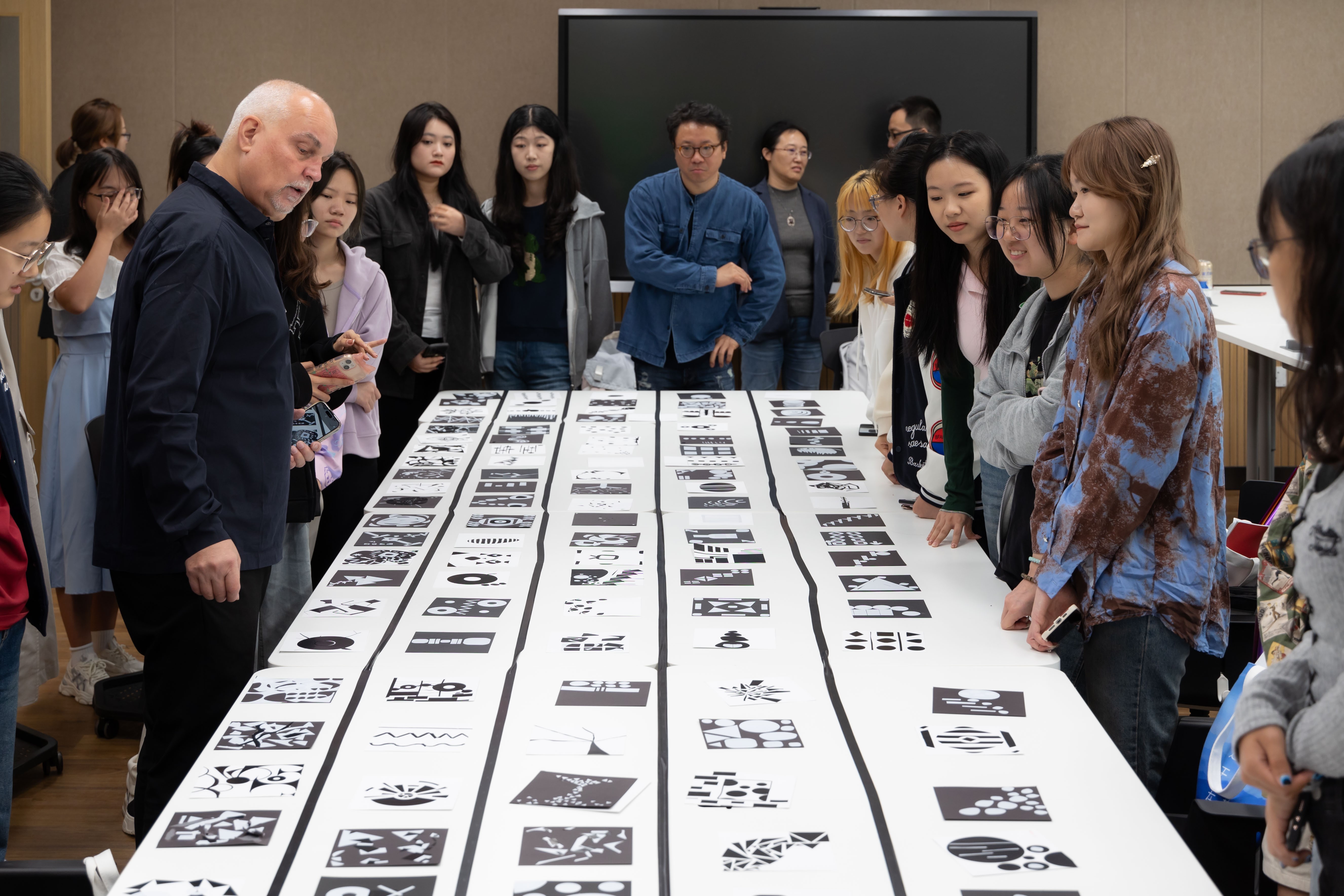 922日,Markus Weisbeck教授和Vera Kunz教授逐一点评作品并指导同学们进行修改,完成修改后,教授将同学们的作品放在一起,请大家讨论选出自己最喜爱的作品。在几位同学发言后,Markus Weisbeck教授和Vera Kunz教授强调,设计的“好”与“不好”是主观判断出来的,没有固定的标准;艺术要从个人感受中阐发,永远也不要忘记创作时的感受。