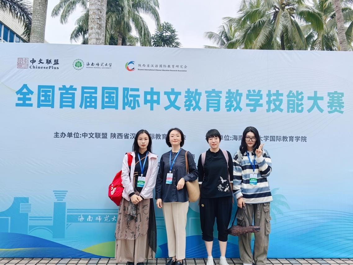近日,由中文联盟,陕西省汉语国际教育协会主办,海南师范大学承办的全国首届国际中文教育教学技能大赛落下帷幕。 在我院带队教师宗圆的指导下,2023级汉语国际教育专业研究生张祎、曲星霖、孙嘉阳三名参赛同学全部进入总决赛,并最终获得两个二等奖、一个三等奖的优异成绩。