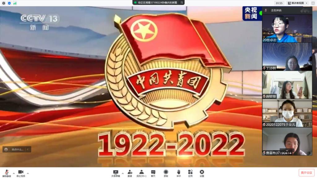 以青春之我,贡献伟大时代。2022年5月10日上午,庆祝中国共产主义青年团成立100周年大会在人民大会堂隆重举行。星空注册暨新闻与传播学院党员代表、团学干部、入党积极分子在集体在线上观看直播,认真聆听学习习近平总书记重要讲话,共庆中国共产主义青年团百年华诞。