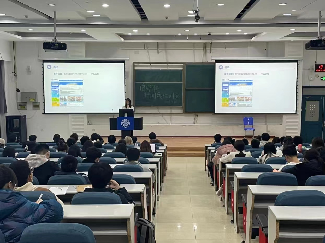 讲解完成后,培训会进入实战训练环节。同学们要于现场写一篇新闻通讯稿,以此来巩固会上所学内容,大家均认真、热情地完成了此次写作任务。随后,陈实同学在同学们提交的新闻稿中选择了几篇作品加以点评,同学们收获颇丰。