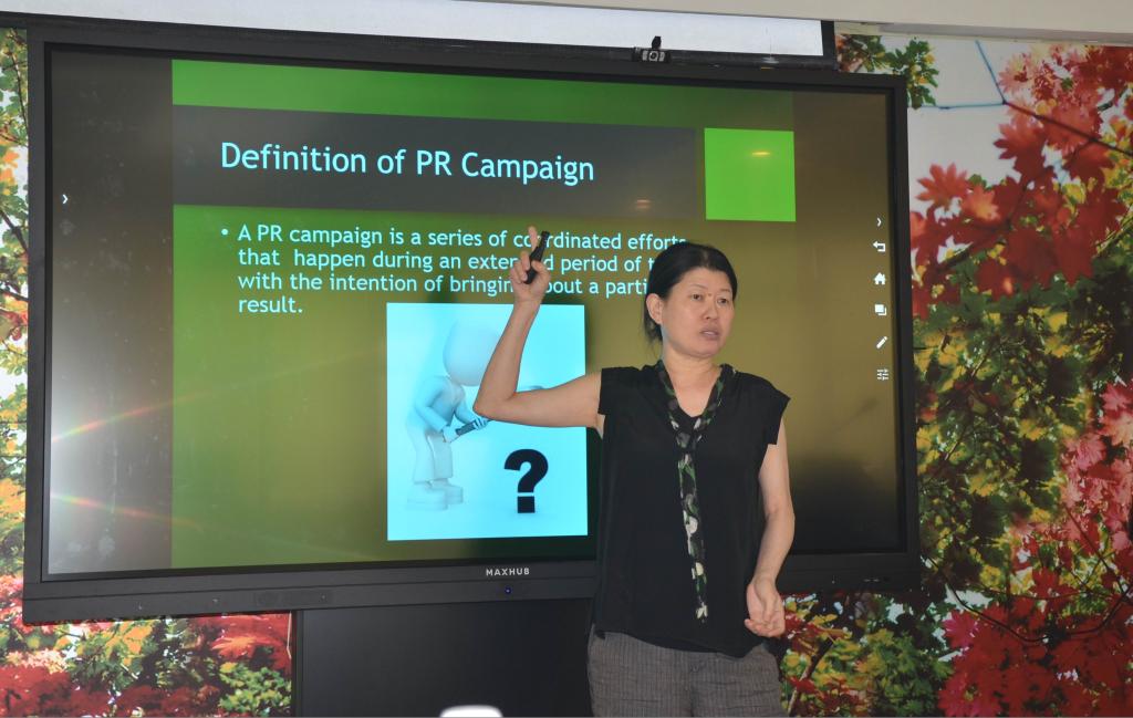 安妮特·威尔耐特教授作了题为《全球公共关系》的第二场讲座。开场她以幽默的语言方式介绍了大众对于公共关系的负面认知,指出这种认知目前正在改变。安妮特·威尔耐特教授阐述了公共关系活动的定义、目的、类型以及价值,她运用实例以及案例视频指出,前期准备活动(活动目的、活动时间和预算的确定)、识别适当评估的类型以及培养对文化差异的敏感对于国际公共关系活动的成功起着关键作用。拉尔斯·威尔耐特夫妇还在讲座现场回答了同学们的提问。