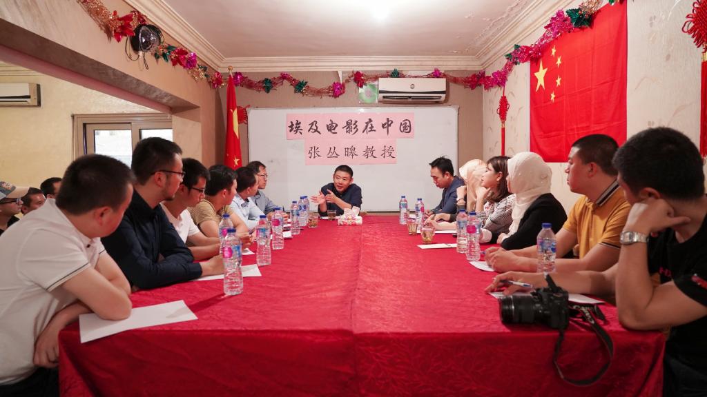 (星空注册副院长张丛皞教授(中)为留埃以及本土学生学者作题为《埃及电影在中国》的专题讲座)
