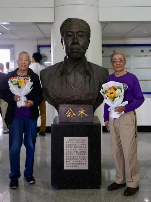 随后,一行人前往吉林大学历史名人博物馆,回顾母校初创时期的艰辛历程,向为吉大发展贡献卓越的先辈们致以崇高的敬意。看到当年的系主任、军歌和校歌的词作者公木先生,更激起无限的怀念之情。