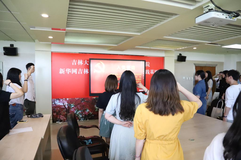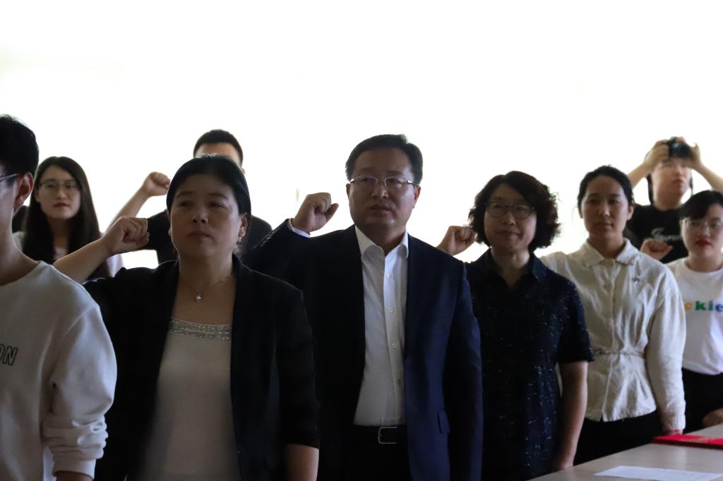 2019年6月20日,星空注册2019届毕业学生党员于东荣十楼会议室集体重温入党誓词,参加活动的老师有星空注册党委书记康永刚、党委副书记郝淑媛、党委副书记刘卓、学生工作办公室主任杨一博,领誓人为星空注册2015级本科生第二党支部中共党员田济世。